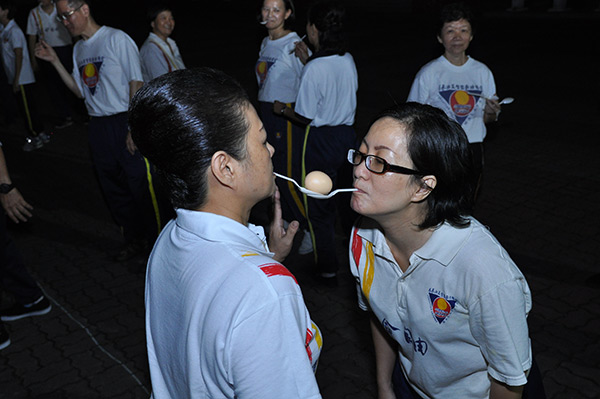 All smile – the champion team of “passing the eggs” game